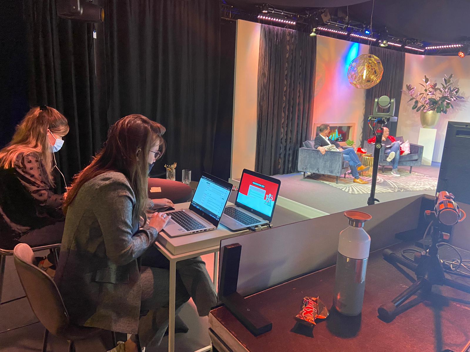 'De dag zelf, met sessies vanuit 3 professionele studio's van First Impression Audiovisueel, verschillende ruimten van ons gebouw aan de Lovensdijkstraat in Breda, maar ook via de webcam bij medewerkers thuis, verliep vlekkeloos,' aldus Annabelle. 'Met 520.000 kijkminuten, 9000 chatberichten, 250 vragen in de Q&A, 2000 poll votes, een met meer dan 7000 clicks goed bezochte informatiemarkt in de Plaza (waar direct contact kon worden gemaakt met de 'standbemanning') en 750 ontmoetingen in de Chatcarrousel kijken we terug op een zeer goed bekeken en uitermate interactief event. De respons op onze enquête is dan ook heel positief, zeker waar het de netwerkmogelijkheden betreft: met name de Chatcarrousel, die in de pauzes beschikbaar was, is zeer enthousiast ontvangen. Veel deelnemers vragen of we die niet vaker, los kunnen inzetten.'
