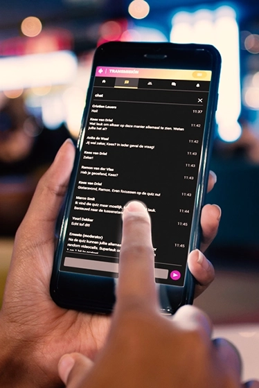 - Via de verschillende Chat-opties komen ze met elkaar in contact en in de Q&A kunnen ze hun vragen kwijt, die live in de uitzending aan bod komen of via de back-end door een moderator worden beantwoord.